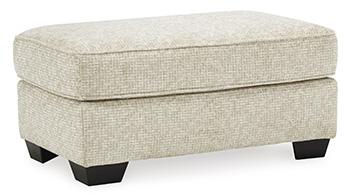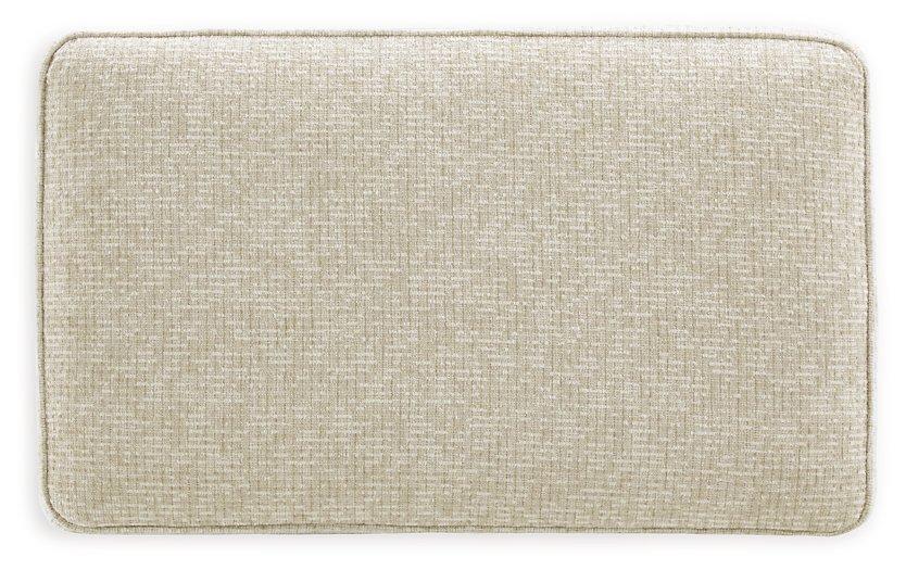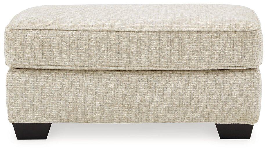 Wrapped in a soft, chunky weave fabric loaded in texture, this ottoman invites you to relax and get comfortable. Light and lovely ivory upholstery makes for such an easy-breezy blend. Generous scale is abundantly practical.