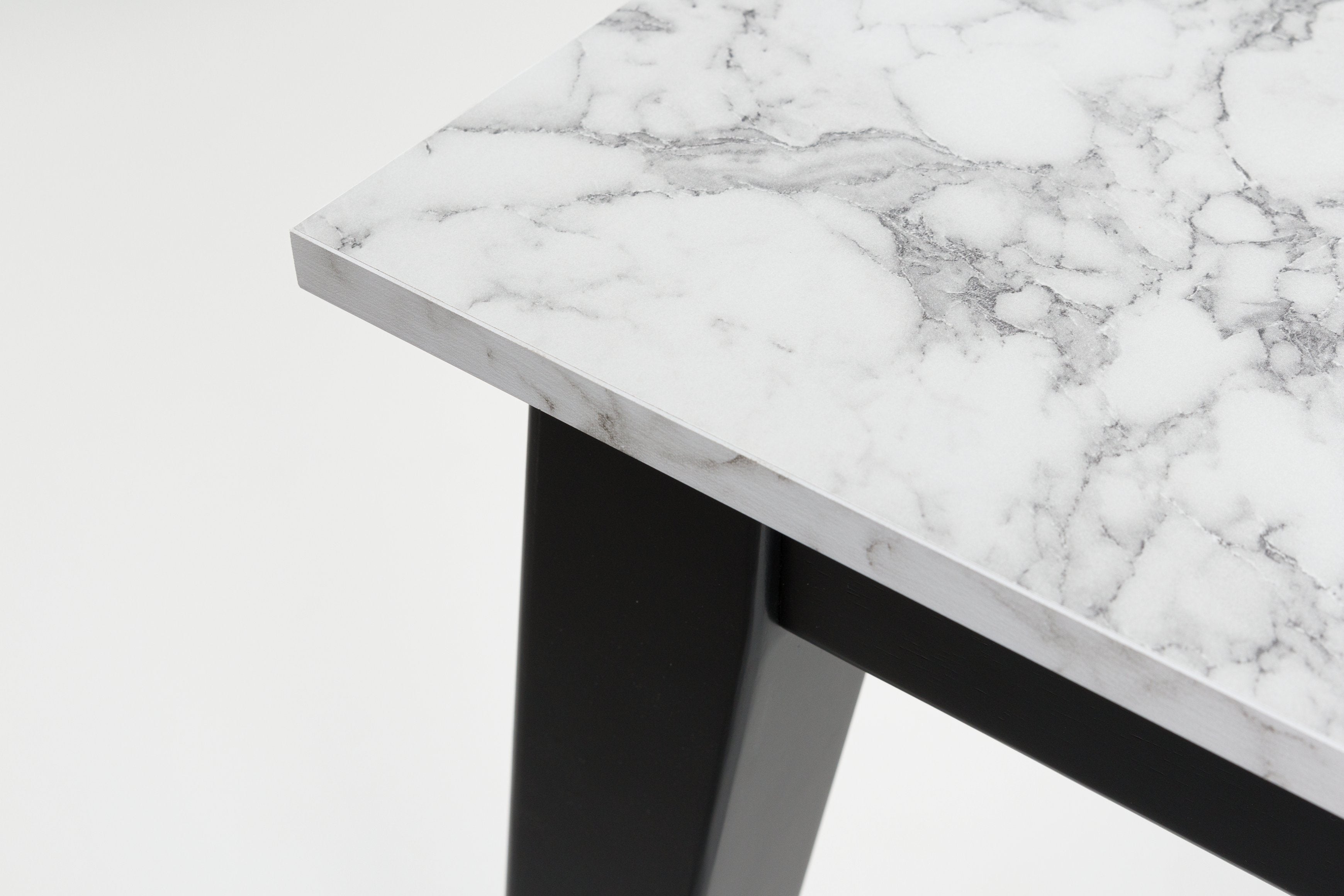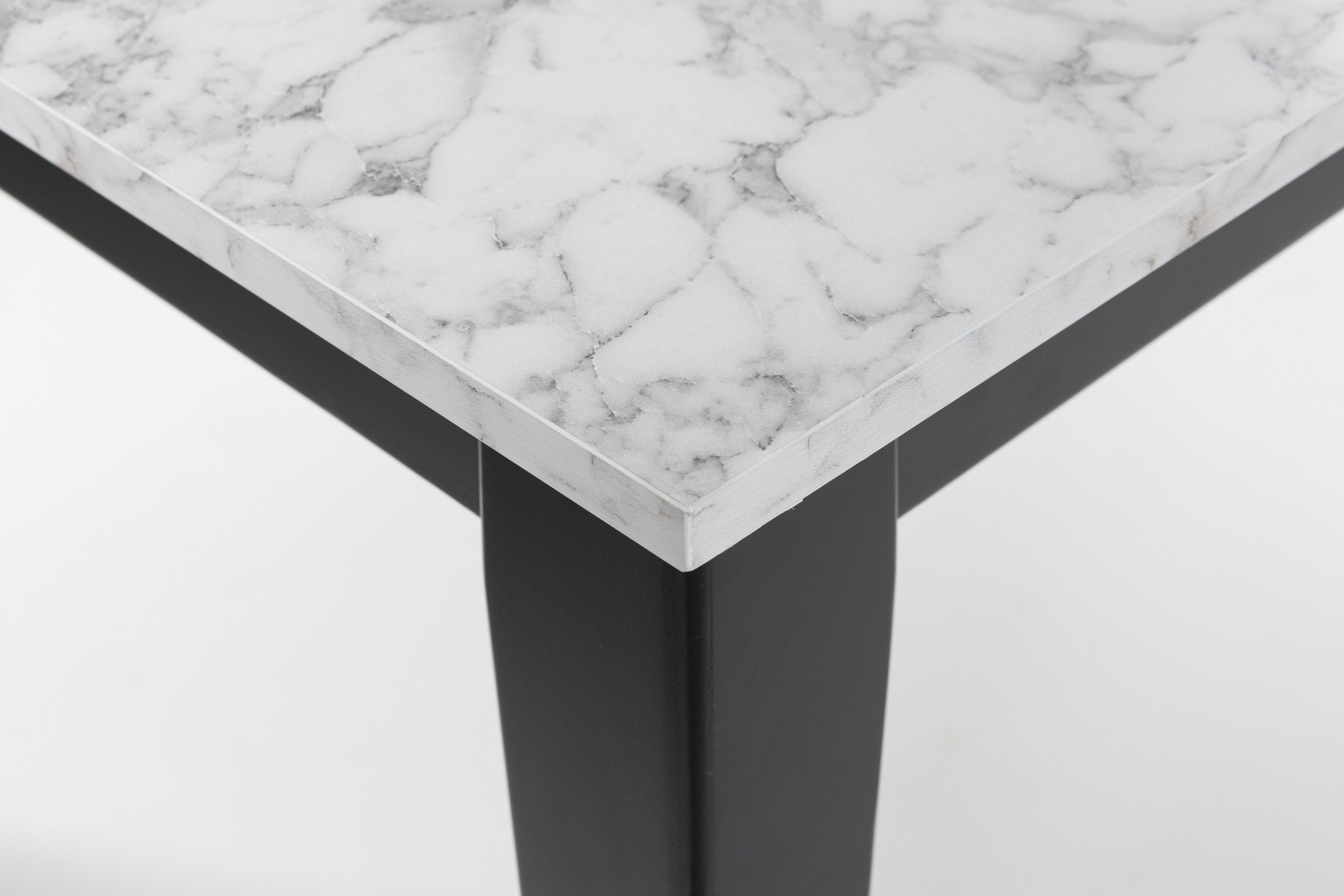 This dining package exudes modern sophistication. The rectangular table, finished in a sleek black wood tone, is adorned with a stunning white faux marble tabletop. Side chairs with faux leather upholstery offer added comfort and style. It's a simply striking feast for the eyes—now your only worry is what to serve for dinner.
