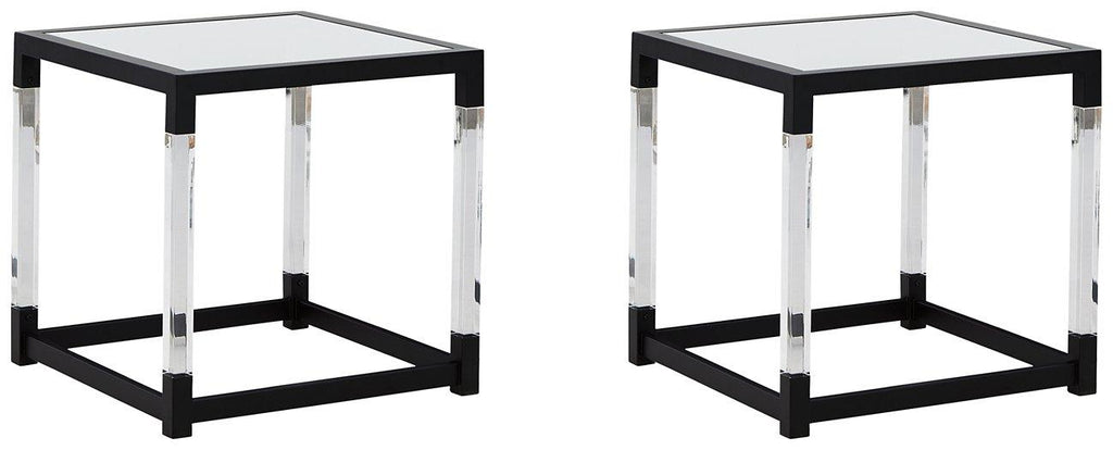 This modern end table set complements your sense of style in a cool, contemporary way. Glass, metal and acrylic elements combine to offer clean-lined design at a comfortably cool price. Dramatic transparent legs give a distinctive flair.