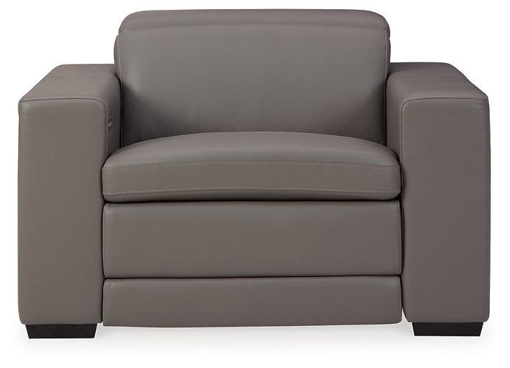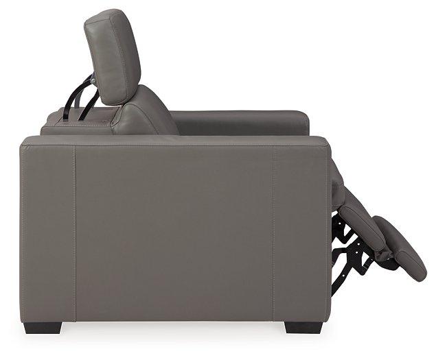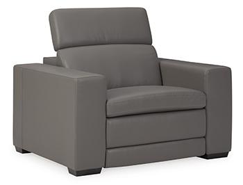 Truly putting high design into recline, this recliner in gray combination leather and faux leather upholstery proves that just because you’re a recliner doesn’t mean you have to look like one. Deceptively beautiful, its ultra clean-lined aesthetic is as cool and contemporary as they come. The low-profile back has a super swank look. When you need more support for your head and neck, the press of a button engages the Easy View™ power adjustable headrest, designed to let you lean back and still have a primo view of the TV. To save space, the zero wall design requires minimal space between wall and chair back. Indulgent pillow top seating gives an added layer of comfort.